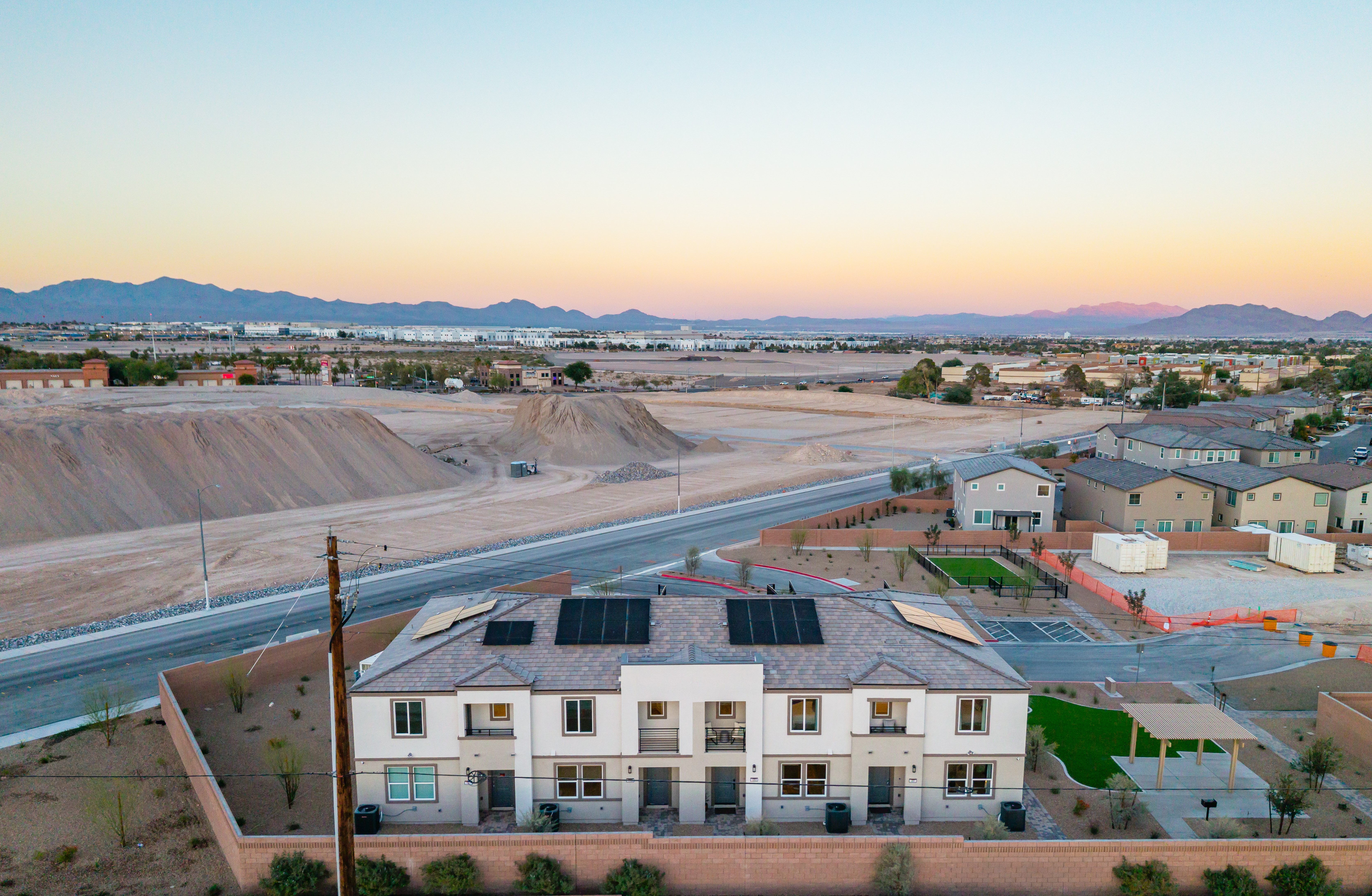 Rosa Point in Las Vegas, NV features two-story townhomes with second-story balconies set in a prime location near the highly anticipated Hylo Park.
