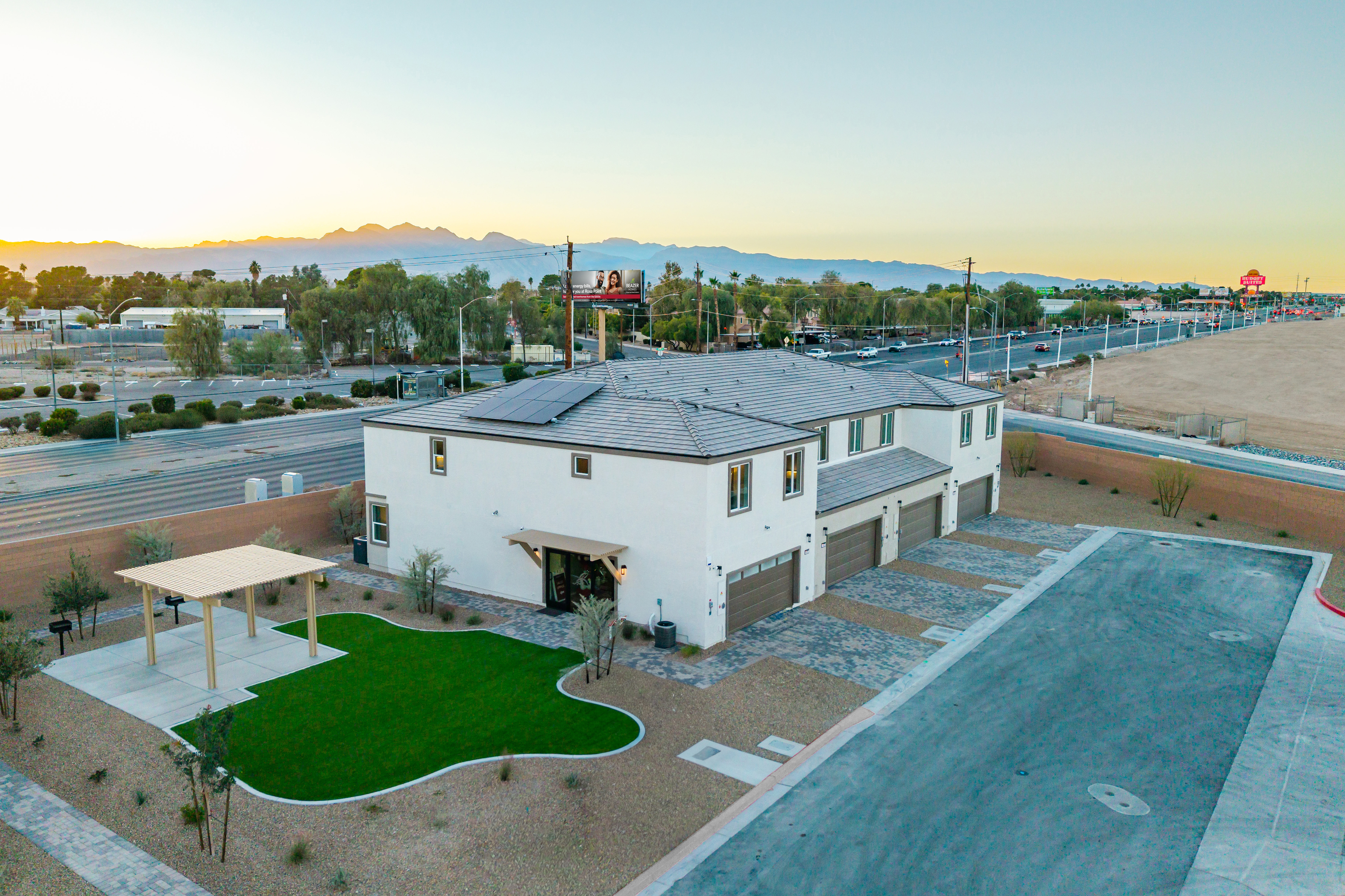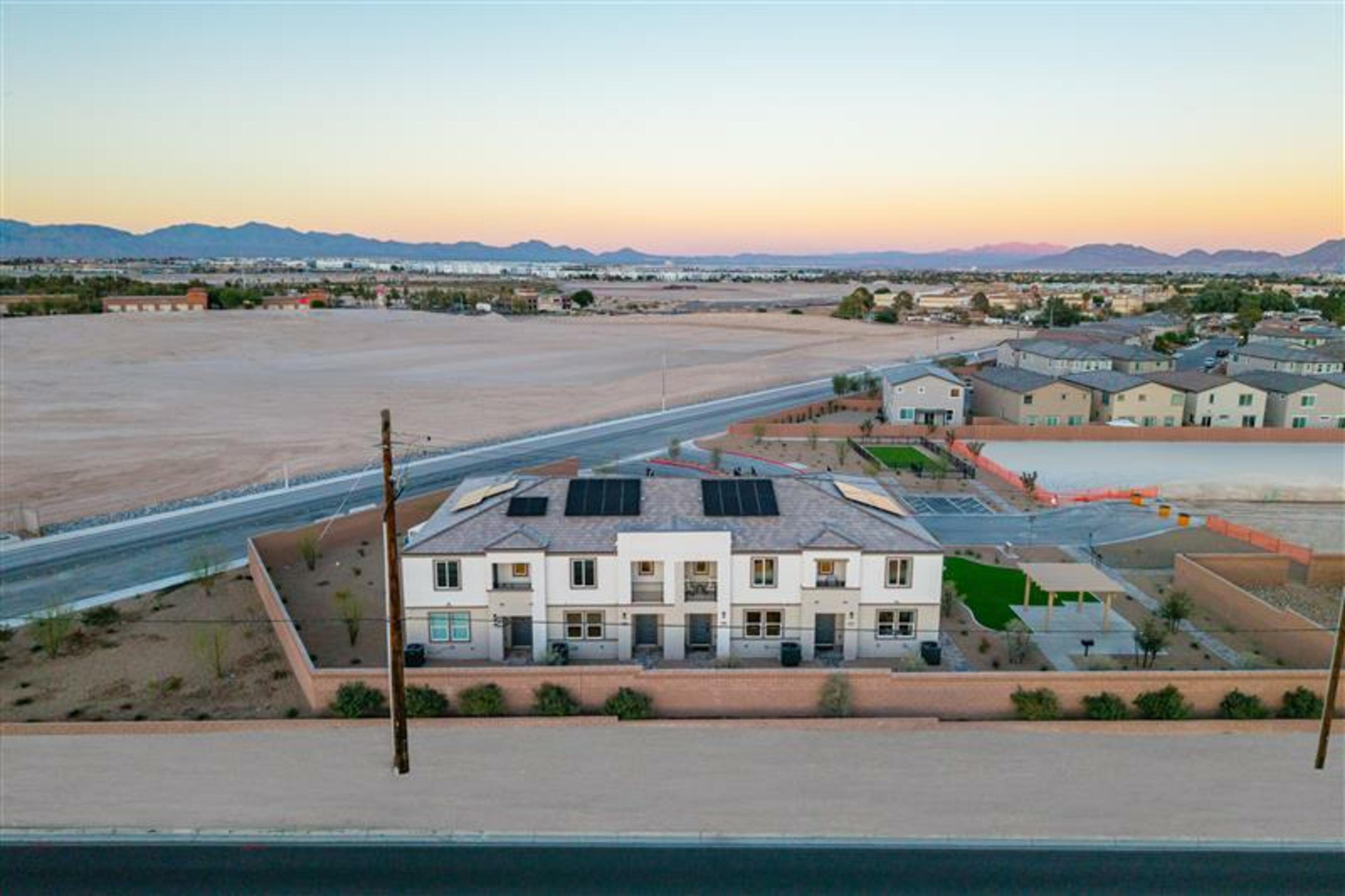 Rosa Point in Las Vegas, NV features two-story townhomes with second-story balconies set in a prime location near the highly anticipated Hylo Park.